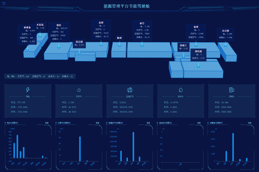 汽车制造行业用能量大,粗略的用能管理无法满足企业能源成本管控的新要求,需要通过更为精细化的能源数据采集、分析,提升企业能源管理水平,降低能源管理成本。系统目标